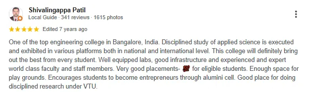 RR Nagar belt option with steady demand. A practical choice for students living in west and south-west Bengaluru. Confirm placement consistency and department strength for your branch.