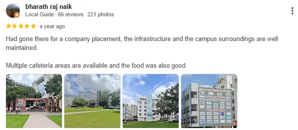 Whitefield side access helps students interested in being closer to IT corridor communities. Good for students who want internships and events nearby, but still verify the internal placement support by branch.