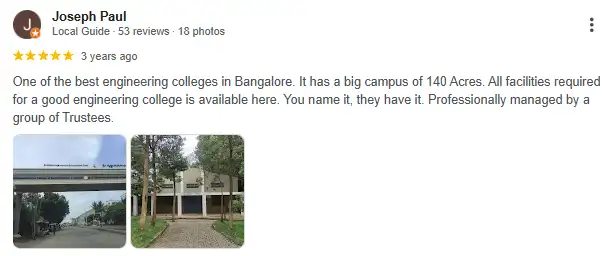 Established institute option in Nagarbhavi belt. Good for students wanting a known campus with reasonable access. Verify labs, faculty stability, and placement outcomes by branch.