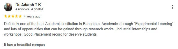 Gottigere side south belt option. Practical for students in south Bengaluru. Confirm core labs, placements by branch, and fees in writing.