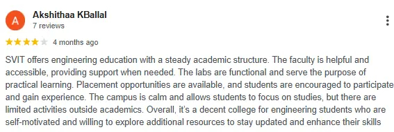 Banashankari area campus with stable academic environment. Good for students looking for a balanced college routine and city access. Confirm internship opportunities and placement preparation structure.